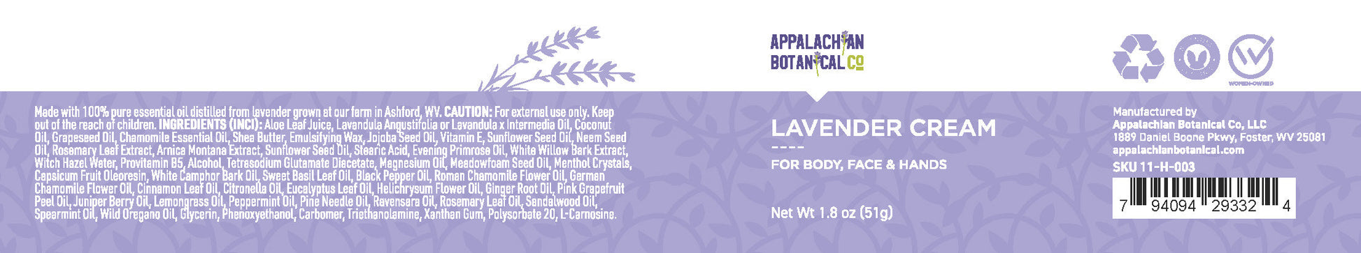 This cream transcends simple moisturizing. It features a unique, sophisticated blend of essential oils built upon our locally sourced, steam-distilled Lavender. Beyond the calming floral note, we include: